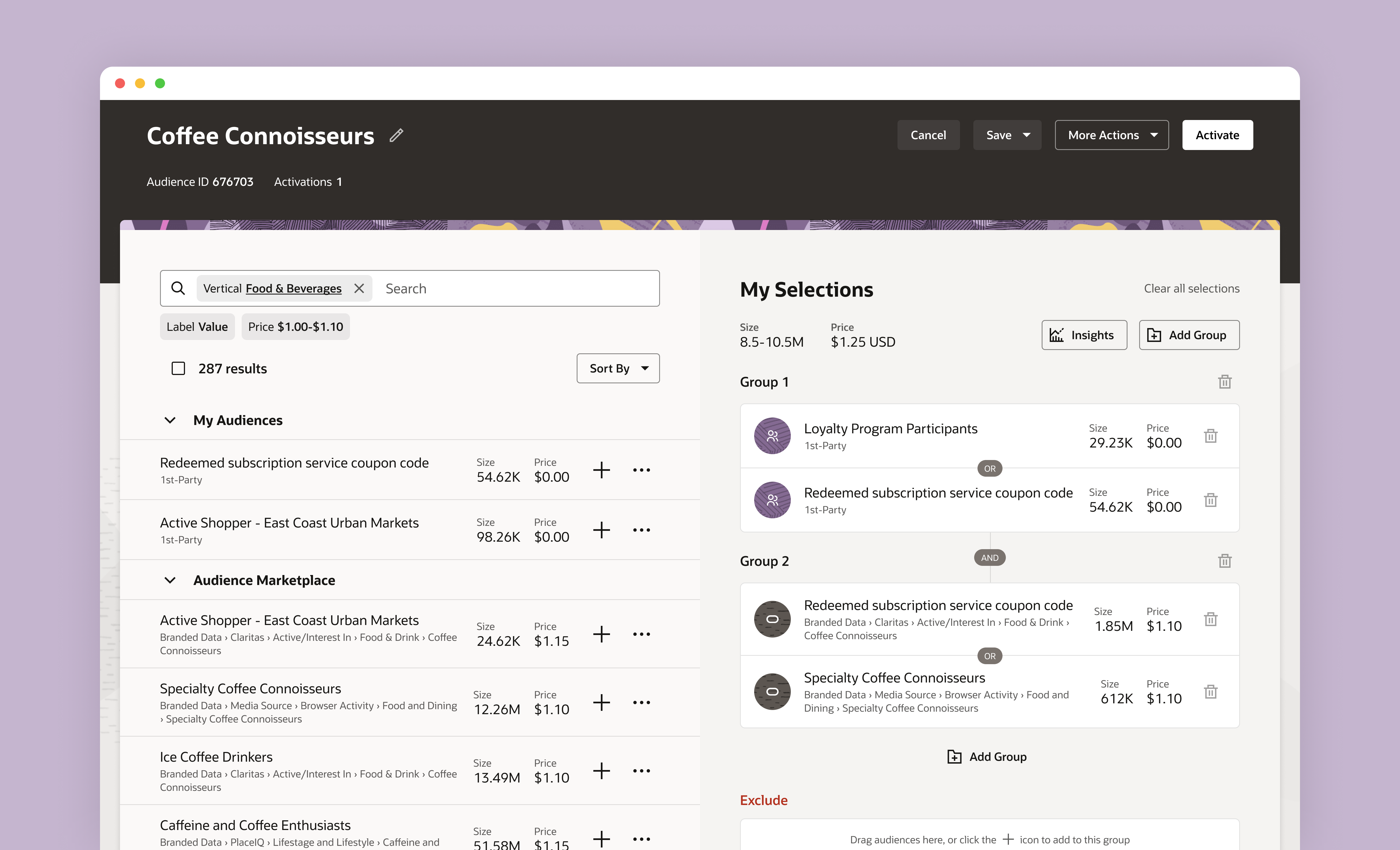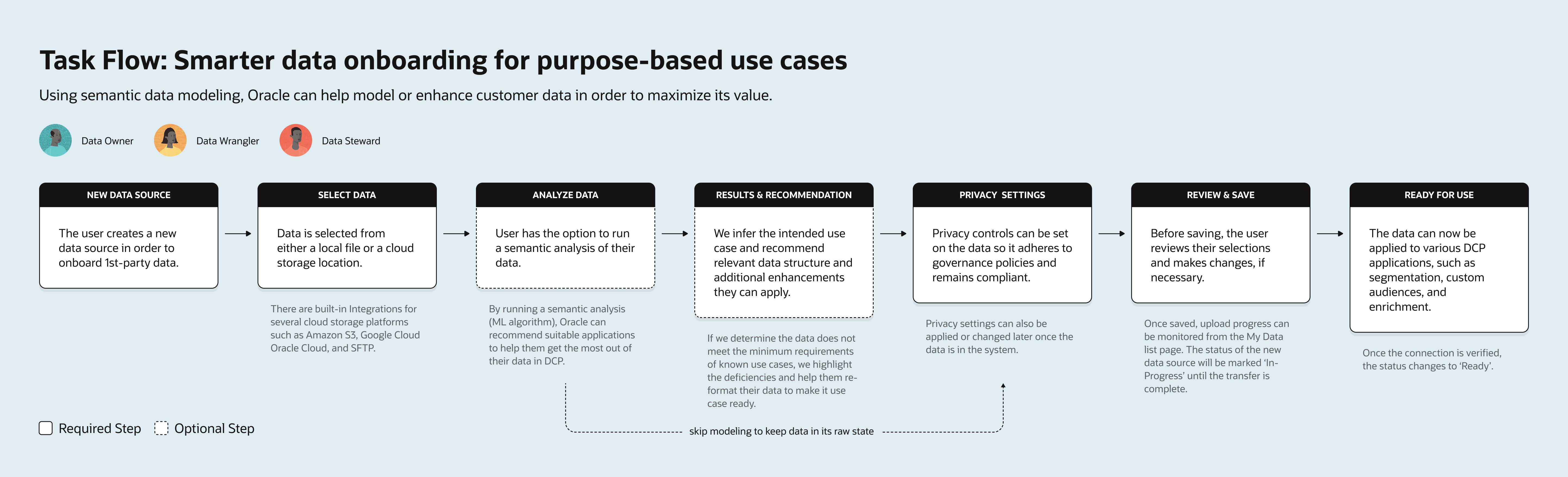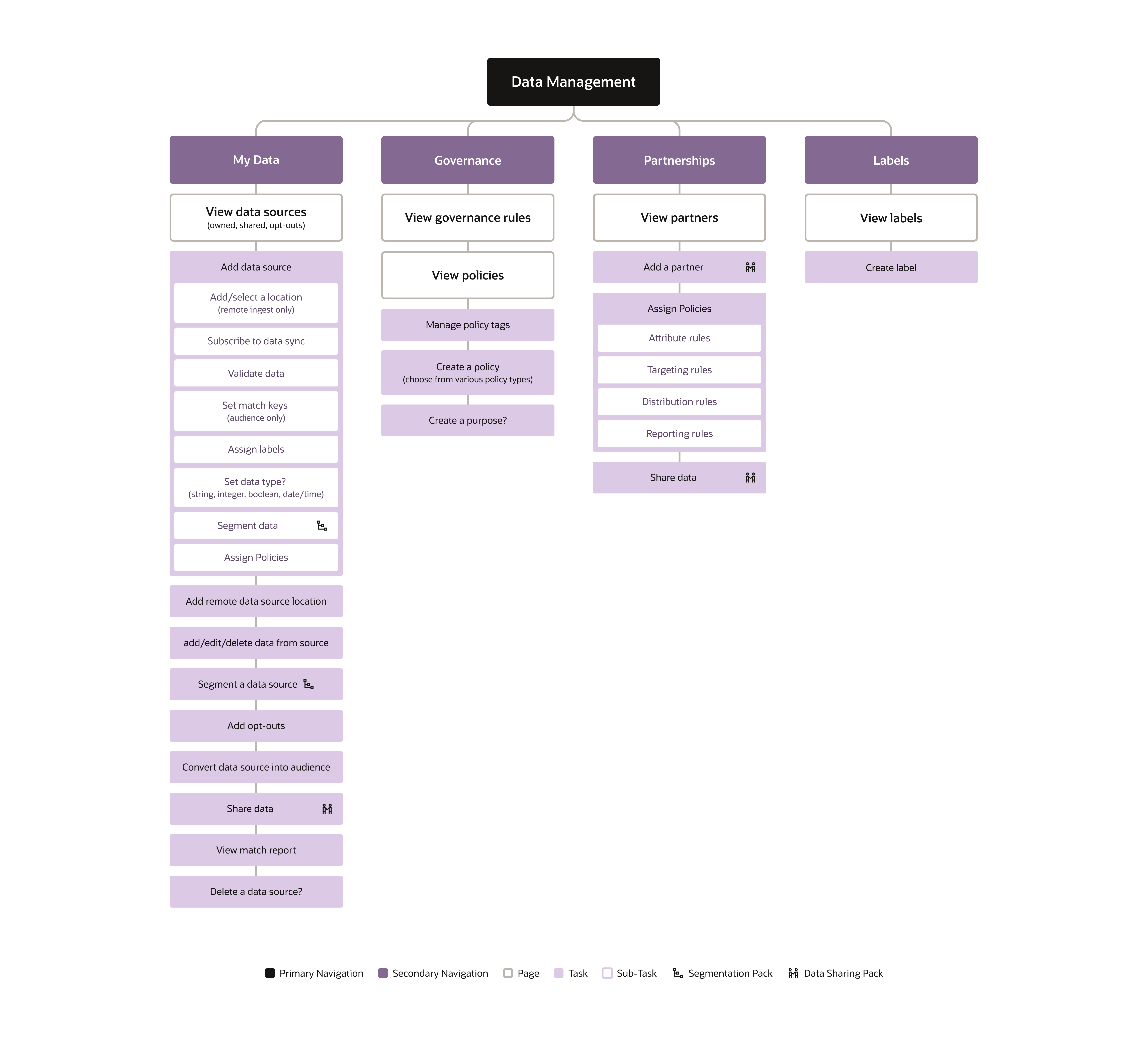 At Oracle, I led UX strategy and design for a new business platform that unified data onboarding, secure partner collaboration, audience planning and activation, and insights into a single cloud application.