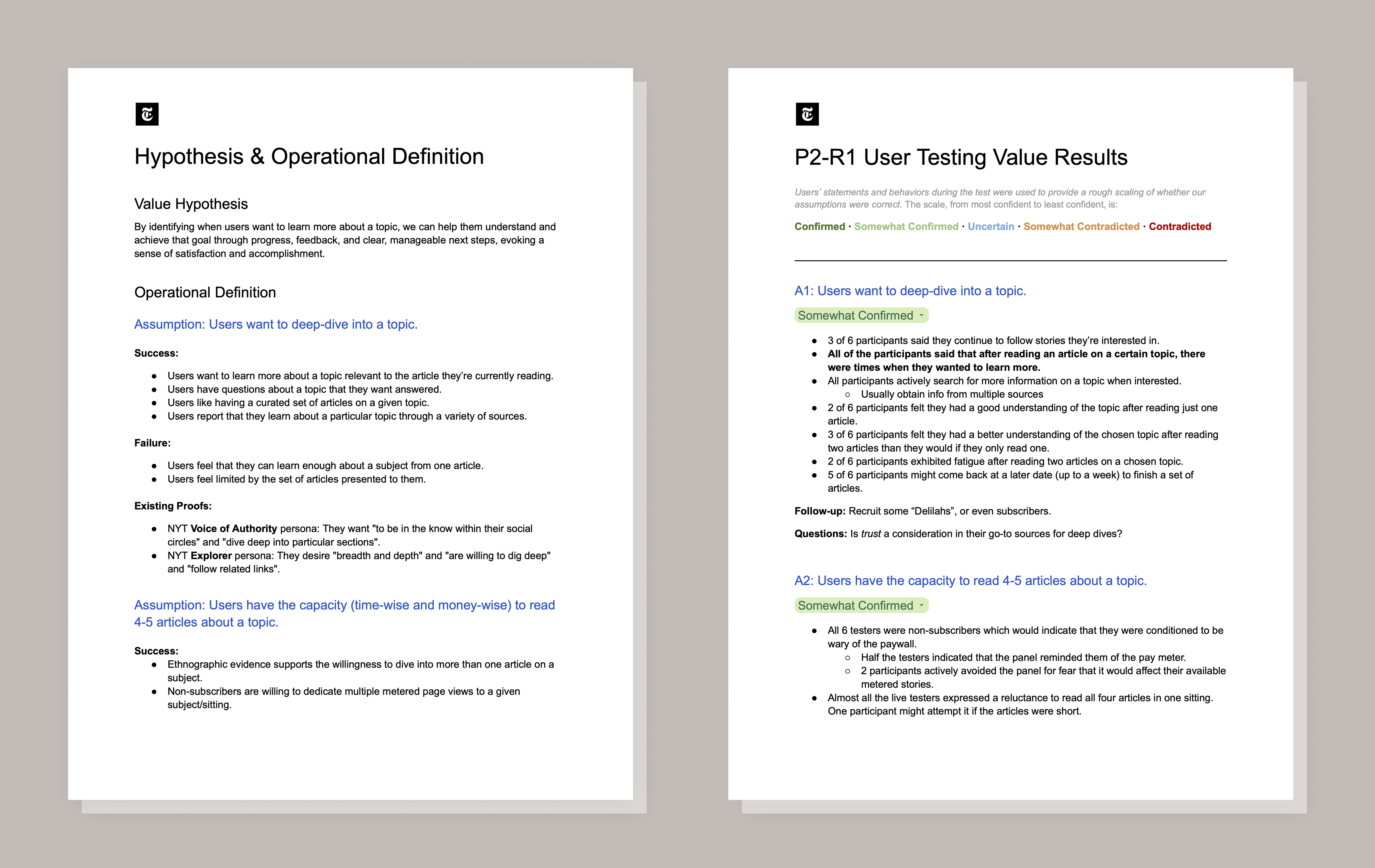 We had two NYT personas in mind, both of whom arrive at an article with a genuine desire to understand a topic, not just skim a headline.