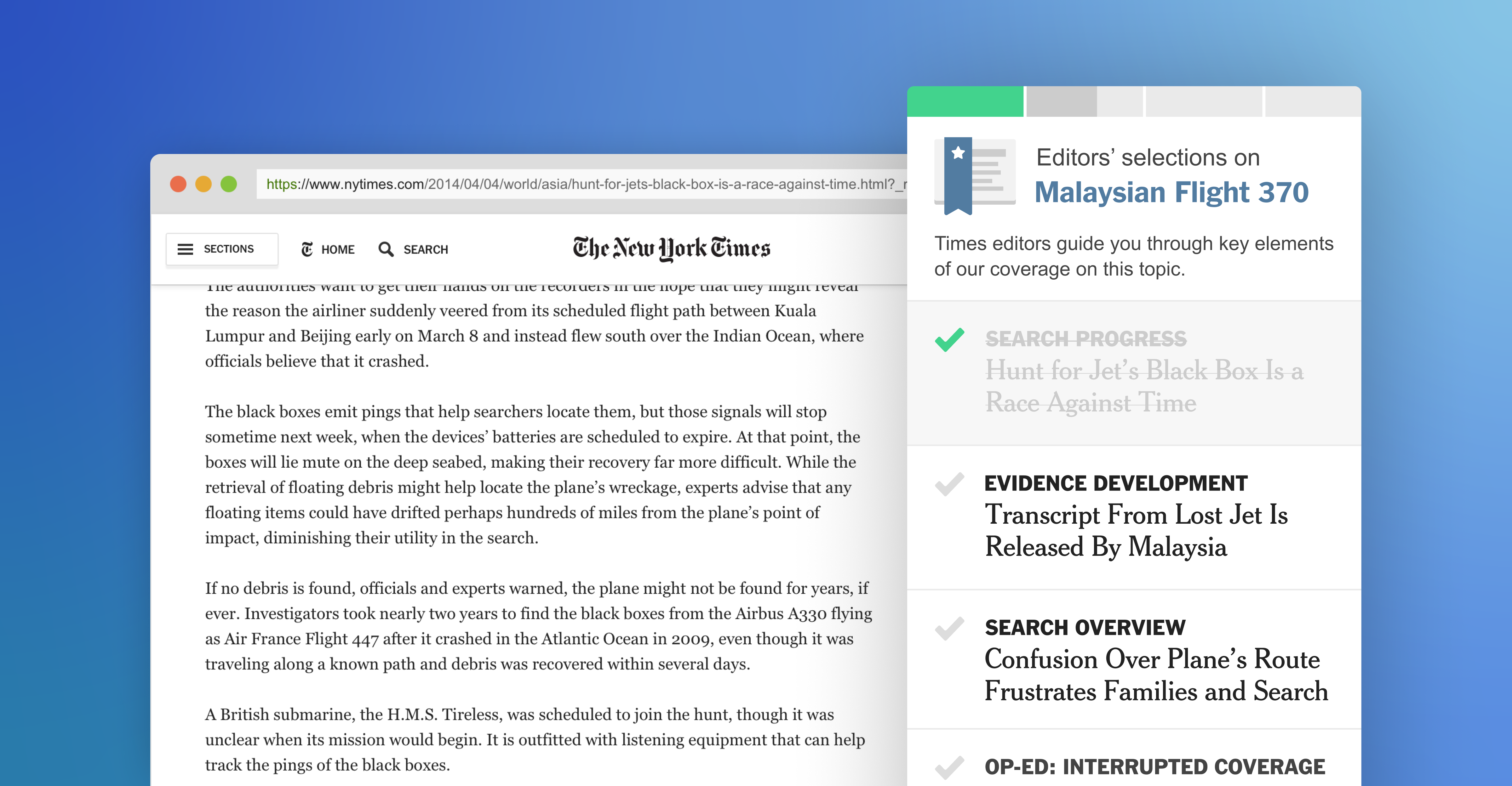Readers want to make the most of their limited time online while staying genuinely informed about topics that matter to them. This project explored whether focused collections of articles could meet that need, deepening understanding of specific topics while giving readers a sense of accomplishment when they finished.